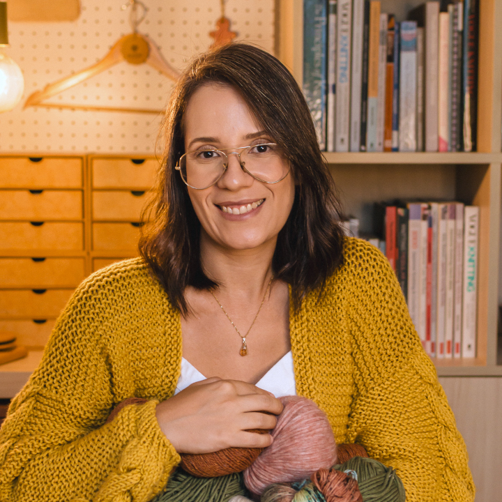 Meu trabalho nasce do encontro entre ensino, criação e comunidade, sempre com a intenção de tornar o tricô mais acessível, possível e presente no dia a dia.